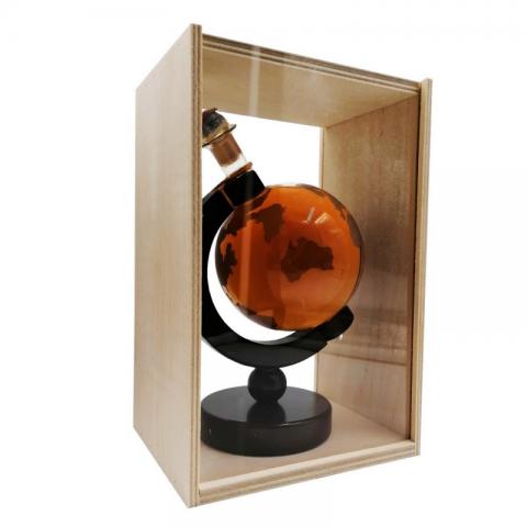 Atunci cand explorati nestiute vise despre rafinate aventuri lichide, va ganditi cu siguranta la superbul nostru glob sablat! Imaculata prezenta a oceanelor este fractionata de desenul continentelor ce par ca erup din Aqua Circumterra. Datorita caldei nuante a celor 350 ml de Rameros brun-roscat, toti prietenii si partenerii de afaceri vor dori sa va urmeze in explorarea acestor continente. Lemnul suportului de glob este baituit in nuanta tutunului. Un cadou realizat manual ideal pentru cadouri corporate. Sticla realizata manual in forma de glob pamantesc.